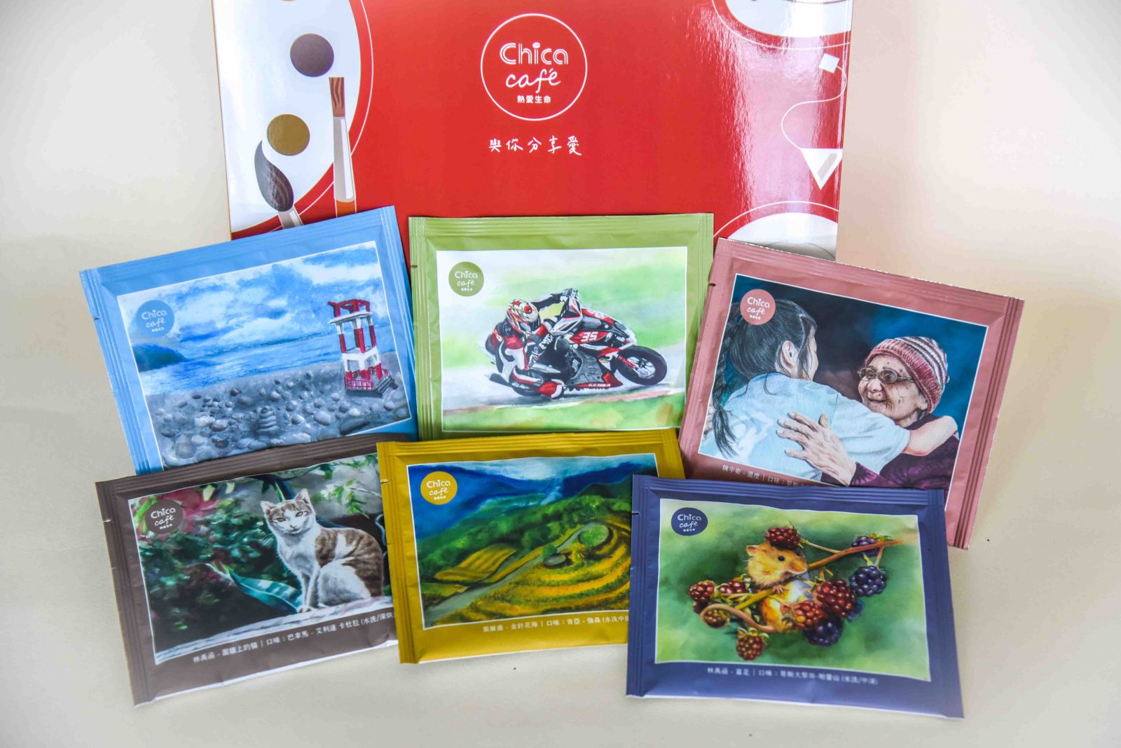熱愛生命 20 多年來致力於關心台灣弱勢兒童及青少年,幫助他們度過課業、生活上的困難,並陪伴這些來自弱勢環境卻仍然懷抱夢想的孩子,培訓一技之長,拓寬未來道路,最終成為助人者回饋於社會。在 Chica Caf'e 購物網的商品,除了與愛心企業公益合作,嚴選實用、有質感的生活好物,還有以孩子們畫作為包裝的自製文創商品、志工手作水餃等等,除了品質絕對不打折,您的每一次購買都將作為公益用途,將幫助孩子們獲得更多學習資源及改善生活的機會。